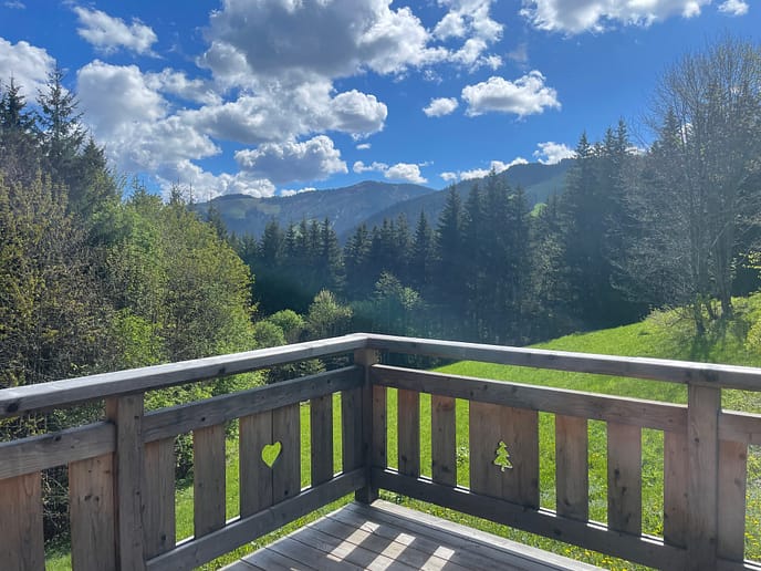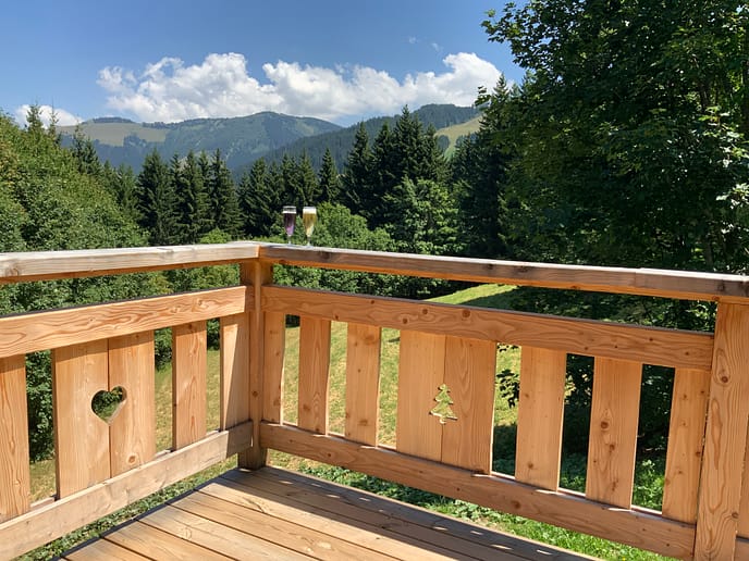 Le chalet dispose de deux terrasses reliées par un grand balcon, offrant des espaces extérieurs parfaits pour se détendre et profiter des magnifiques paysages :