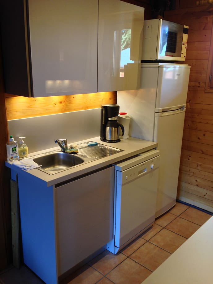 Avec ses équipements modernes et son style chaleureux, la cuisine de notre chalet vous permet de préparer vos repas tout en restant proche de la famille ou des amis.