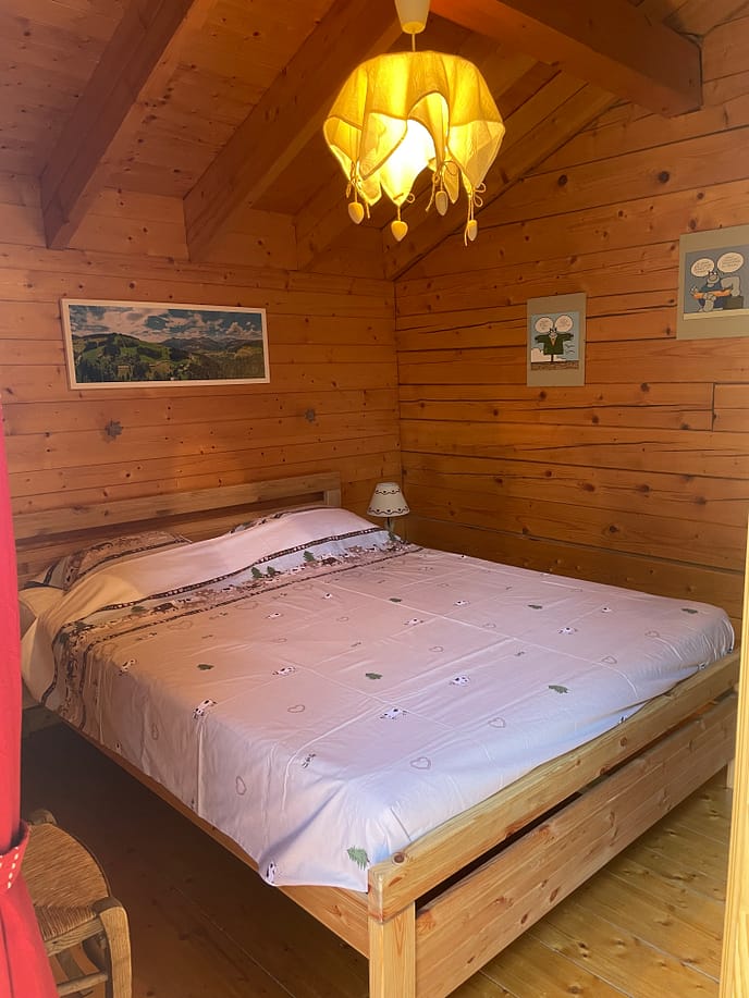 La chambre double « Mont-Rond » est équipée d’un lit confortable de 1,4m de large pour des nuits paisibles.